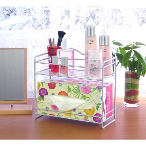 ちらかりがちな化粧小物をコンパクトスペースで整理できます。プレート付きで容器などもガタつきにくい!ティッシュと小物を2段にひとまとめ!