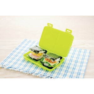 かみ切りやすくて食べやすい、ミニサイズのおにぎらずができるキットとケースです。穴開け器とシリコンシートで、海苔に細かな穴を開けることでかみ切りやすくします。握らなくて良いので、炊きたての熱々のご飯でもすぐに作ることができ、手を汚すこともありません。ケースの上で作ってそのまま待ち運べるので、詰める手間も省けます。スリムな形状なので、潰れなくてかさばりません。